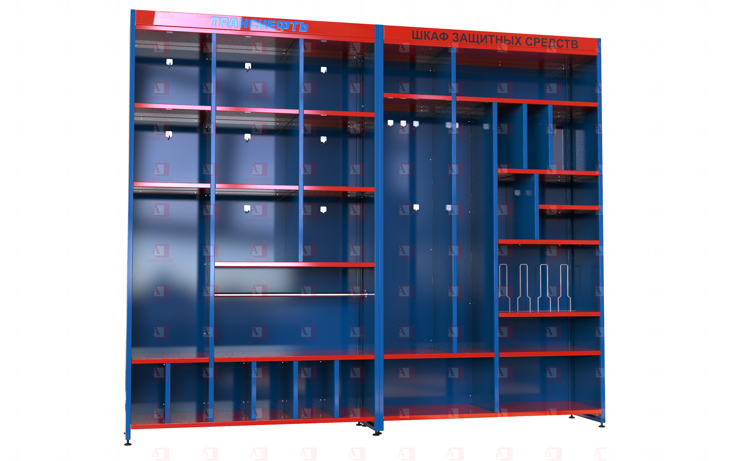• Шкаф СИЗ "Альфа-11" (расцветка "ТРАНСНЕФТЬ, цвет: синий, красный") из стали с полимерным покрытием для энергоустановок.