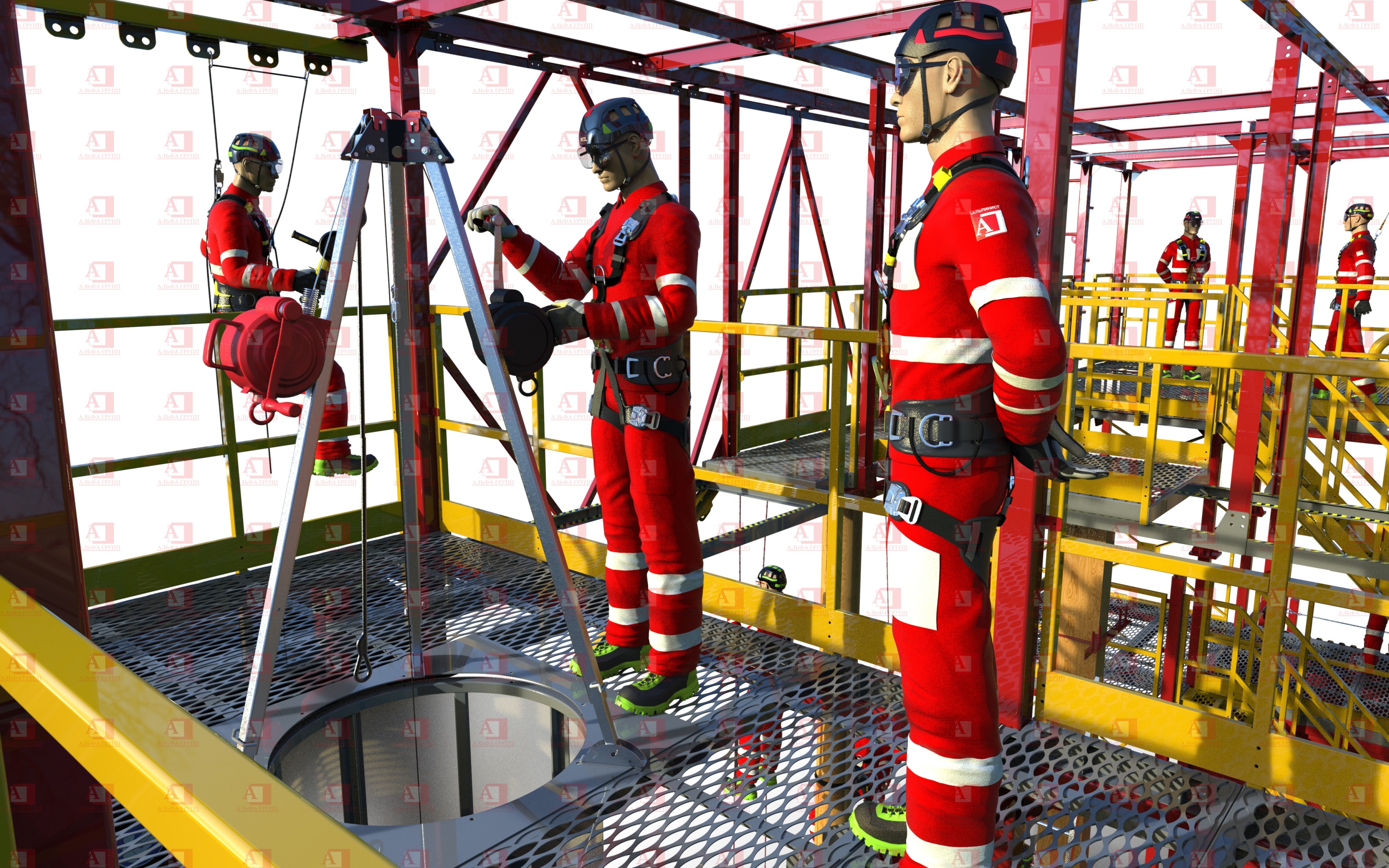 •  Подъём по металлоконструкции с применением вертикальной гибкой анкерной линии;